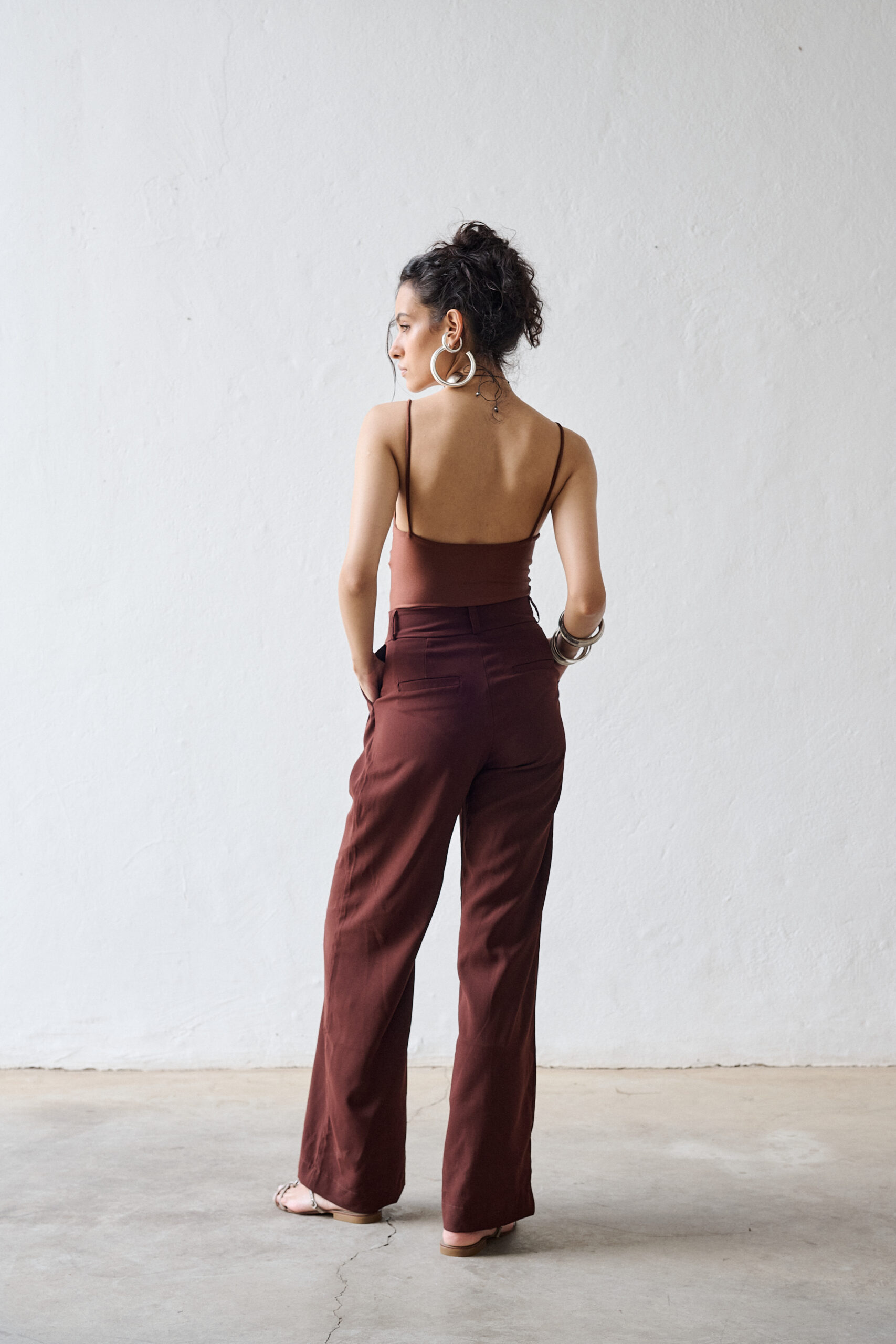 Ver opções Este produto tem várias variantes. As opções podem ser escolhidas na página do produtoR$ 478,00 5 x R$ 95,60Nossa Calça Mambo possui modelagem mais ampla, estilo pantalona e boca de sino, cintura alta e marcada e fechamento lateral por zíper invisível. Feita em crepe de alfaiataria, possui caimento mais estruturado. Perfeita para eventos formais e informais, é uma peça essencial para todo guarda roupa!