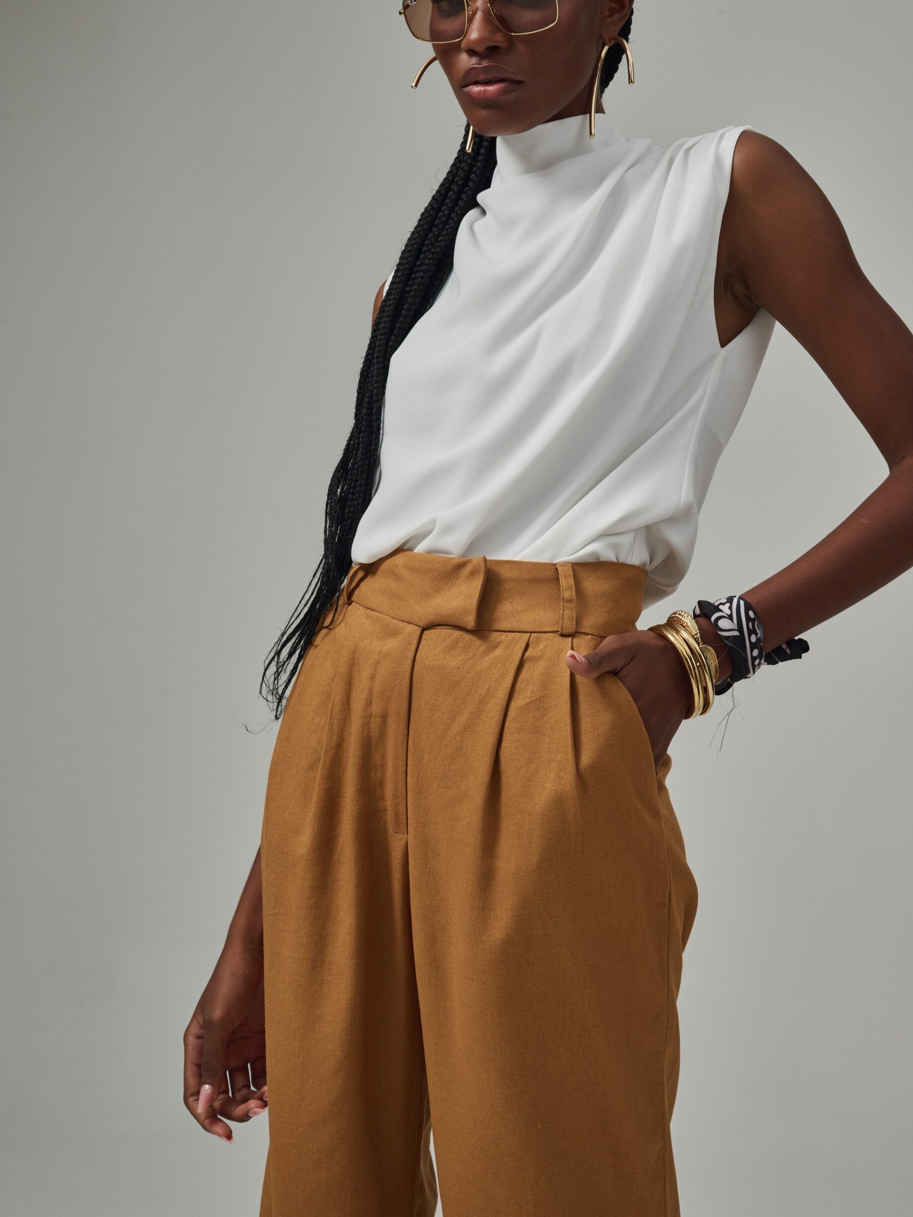 Ver opções Este produto tem várias variantes. As opções podem ser escolhidas na página do produto Quick ViewR$ 558,00 5 x R$ 111,60A Pantalona Eliza é uma peça leve e versátil, possui a modelagem mais ampla, com corte reto, pregas frontais e cintura alta. Fechamento frontal por colchete duplo e zíper comum.