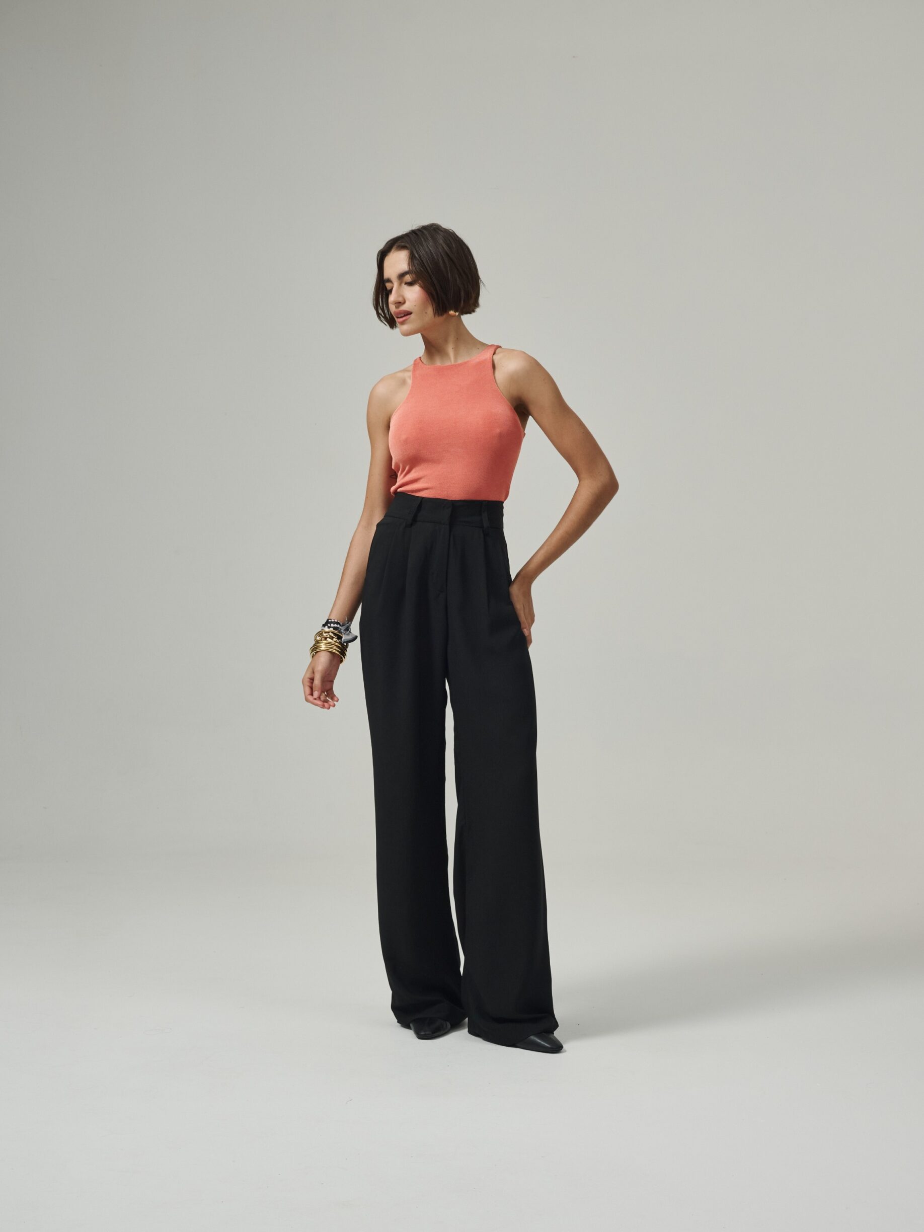 Ver opções Este produto tem várias variantes. As opções podem ser escolhidas na página do produto Quick ViewR$ 558,00 5 x R$ 111,60A pantalona Eliza é uma peça leve e versátil, possui a modelagem mais ampla, com corte reto, pregas frontais e cintura alta. Fechamento frontal por colchete duplo e zíper comum.