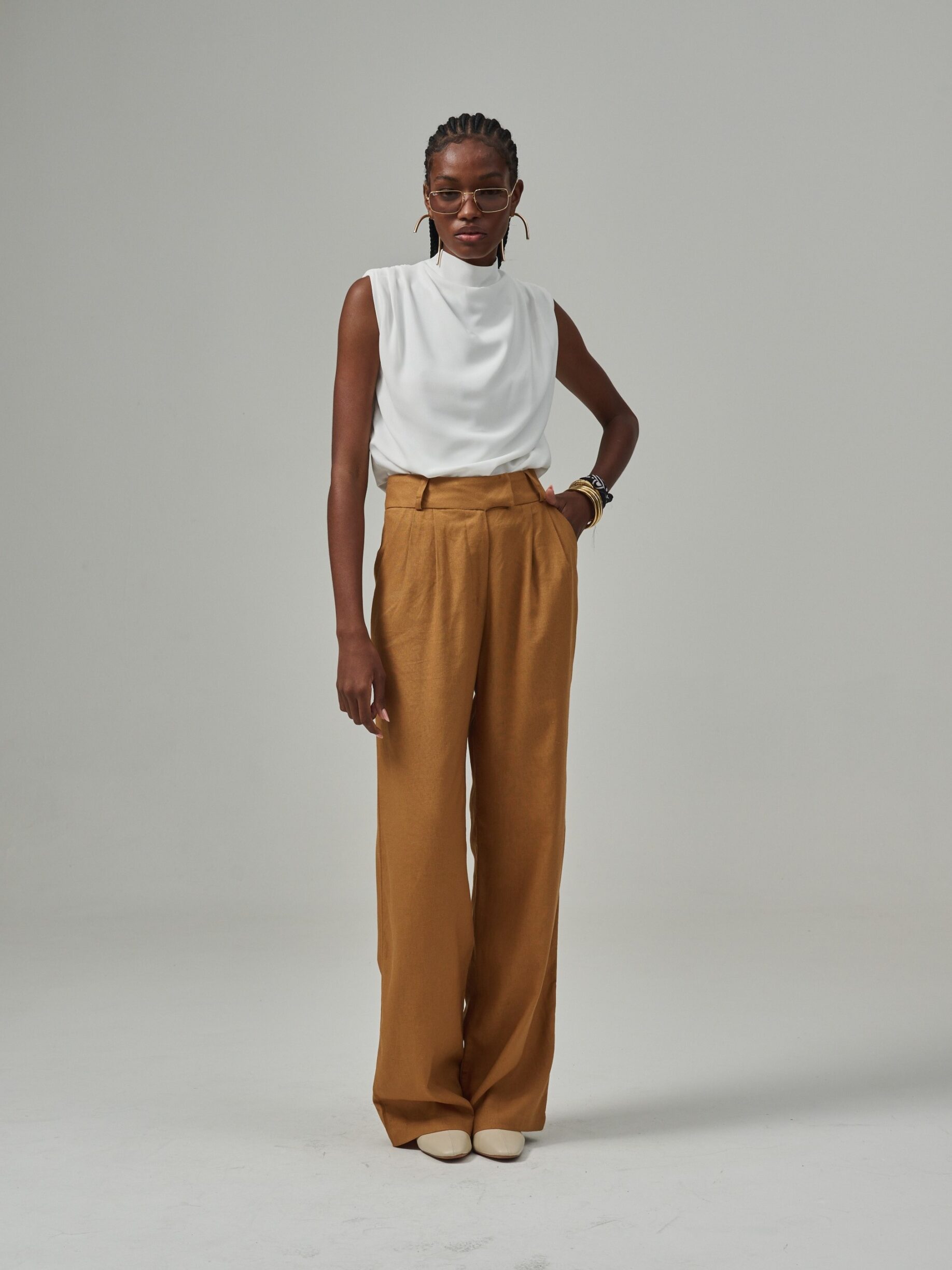 Ver opções Este produto tem várias variantes. As opções podem ser escolhidas na página do produto Quick ViewR$ 558,00 5 x R$ 111,60A pantalona Eliza é uma peça leve e versátil, possui a modelagem mais ampla, com corte reto, pregas frontais e cintura alta. Fechamento frontal por colchete duplo e zíper comum.
