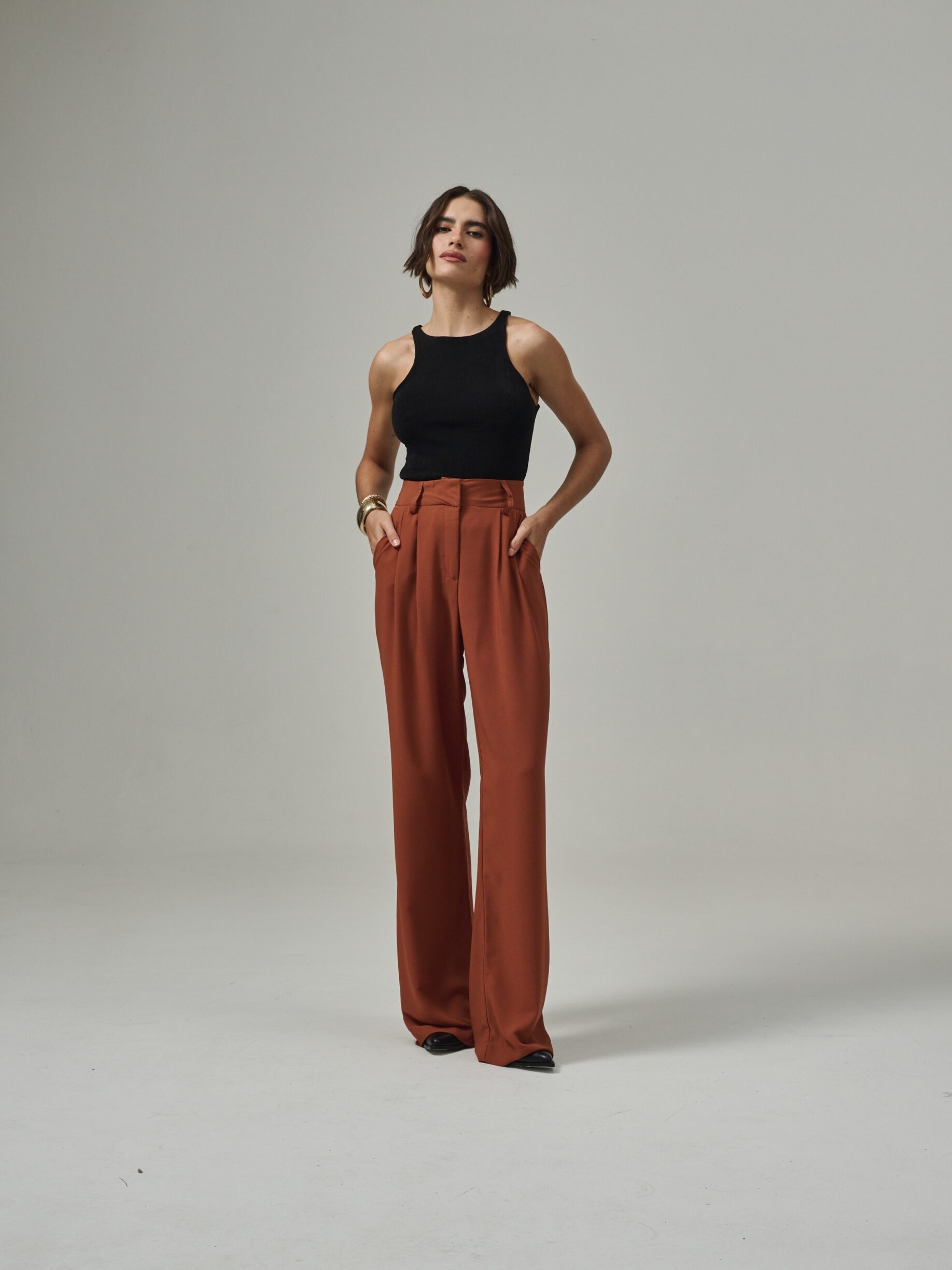 Ver opções Este produto tem várias variantes. As opções podem ser escolhidas na página do produto Quick ViewR$ 558,00 5 x R$ 111,60Nossa pantalona Nina possui modelagem mais ampla, com corte reto, pregas frontais, cintura alta e marcada e fechamento frontal por colchete duplo. Feita em crepe de alfaiataria, possui caimento fluido, possibilitando maior conforto para movimentar.