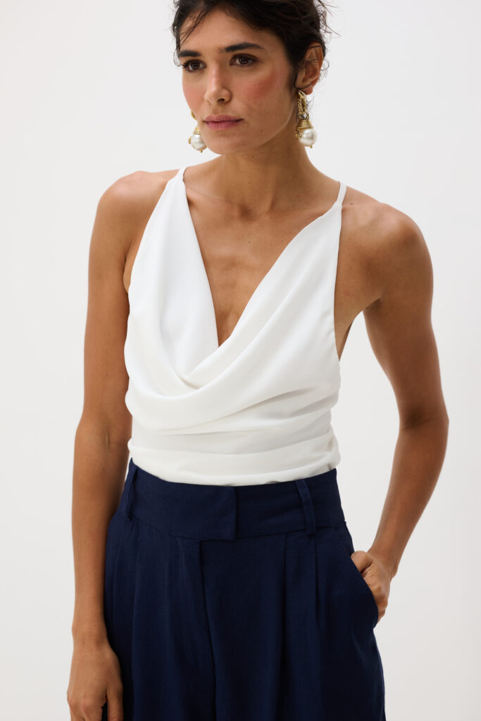 Composição: 79% viscose, 18% linho e 3% elastano.