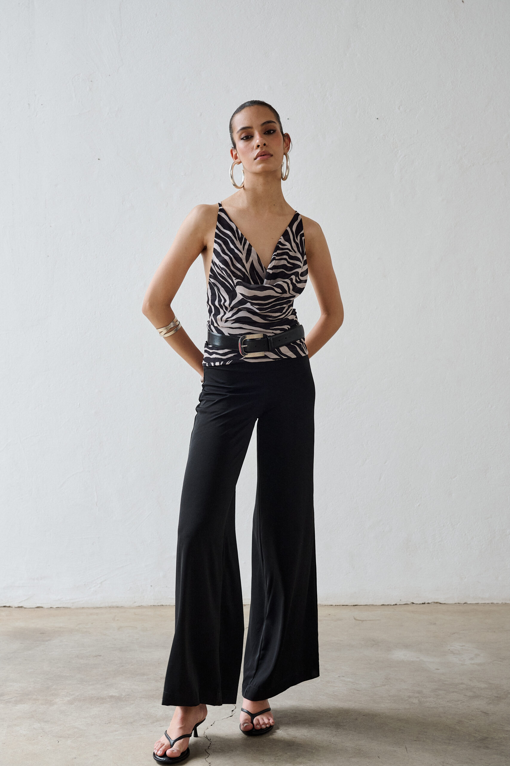 A nossa Blusa Jade agora chega em versões estampadas, trazendo ainda mais personalidade ao modelo. Ela possui decote V profundo e comprimento na cintura, destacando a silhueta de forma elegante.