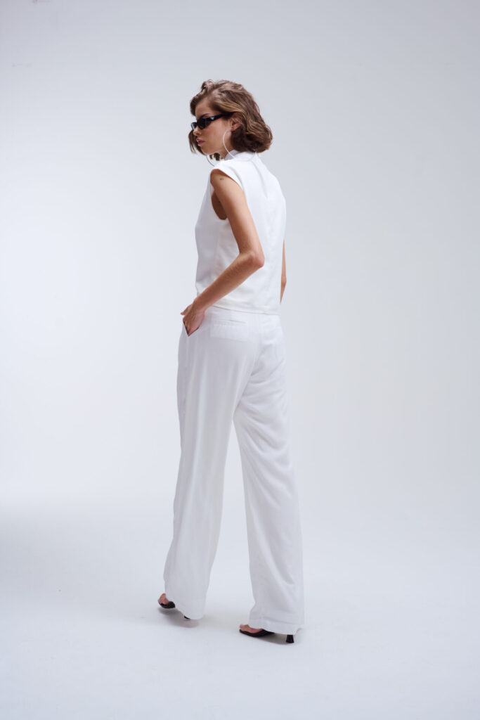 A blusa Eva é a expressão da sofisticação moderna com um toque minimalista. Desenvolvida em tecido acetinado de alta qualidade, ela oferece um caimento leve e fluido, trazendo elegância e conforto na medida certa.