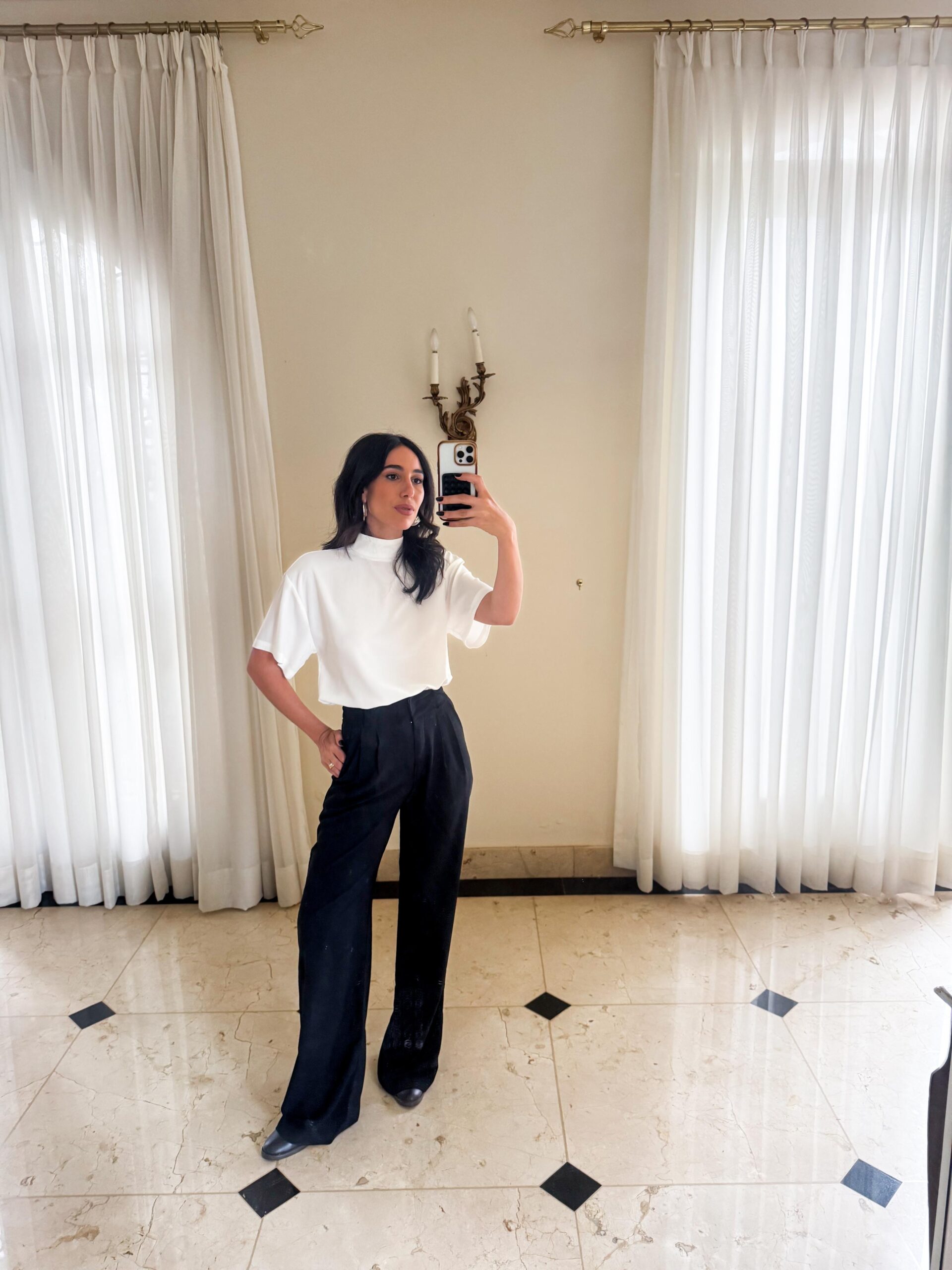 Nossa blusa Luba, possui manga t-shirt, ombro levemente caído, com fechamento nas costa por zíper e possui frente dupla do mesmo tecido, o que proporciona forro que impede transparência. Uma peça confortável e despojada, é mais soltinha ao corpo, feita em crepe de alfaiataria super leve e fluido e permite o uso de sutiã tranquilamente, pois não marca.