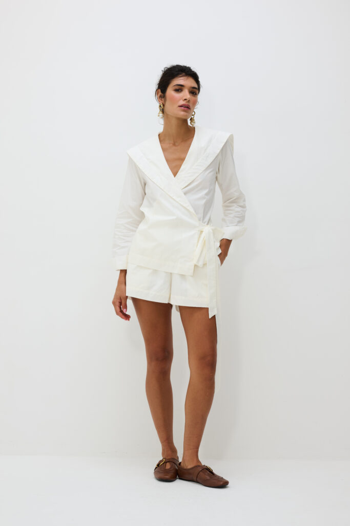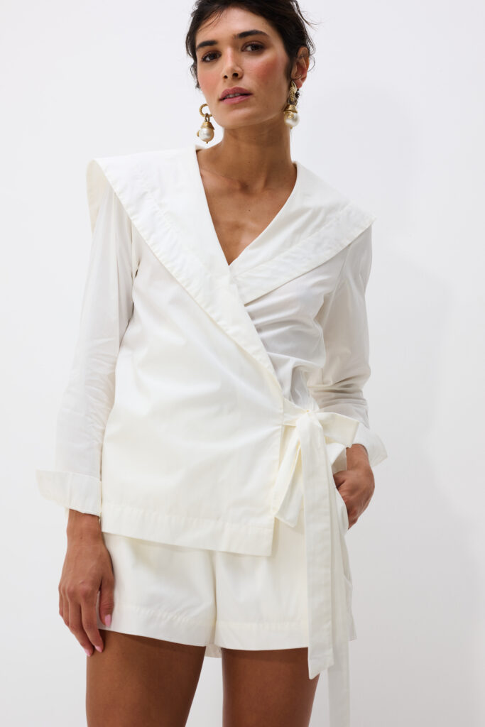 Blusa Tricoline Transpassada Com Manga Isla – Off