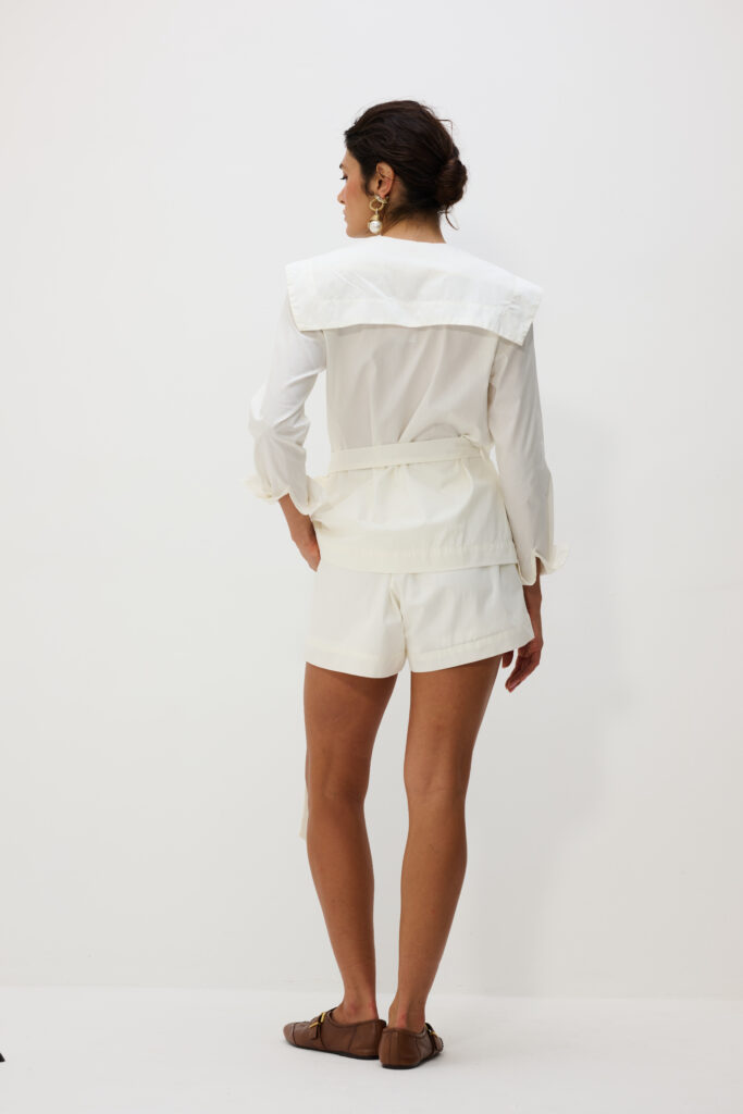 O design limpo e a modelagem confortável tornam o casaqueto uma escolha versátil para diferentes ocasiões. Ele funciona tanto como protagonista do look quanto como sobreposição leve para composições mais elaboradas, mantendo sempre uma estética elegante e atual.