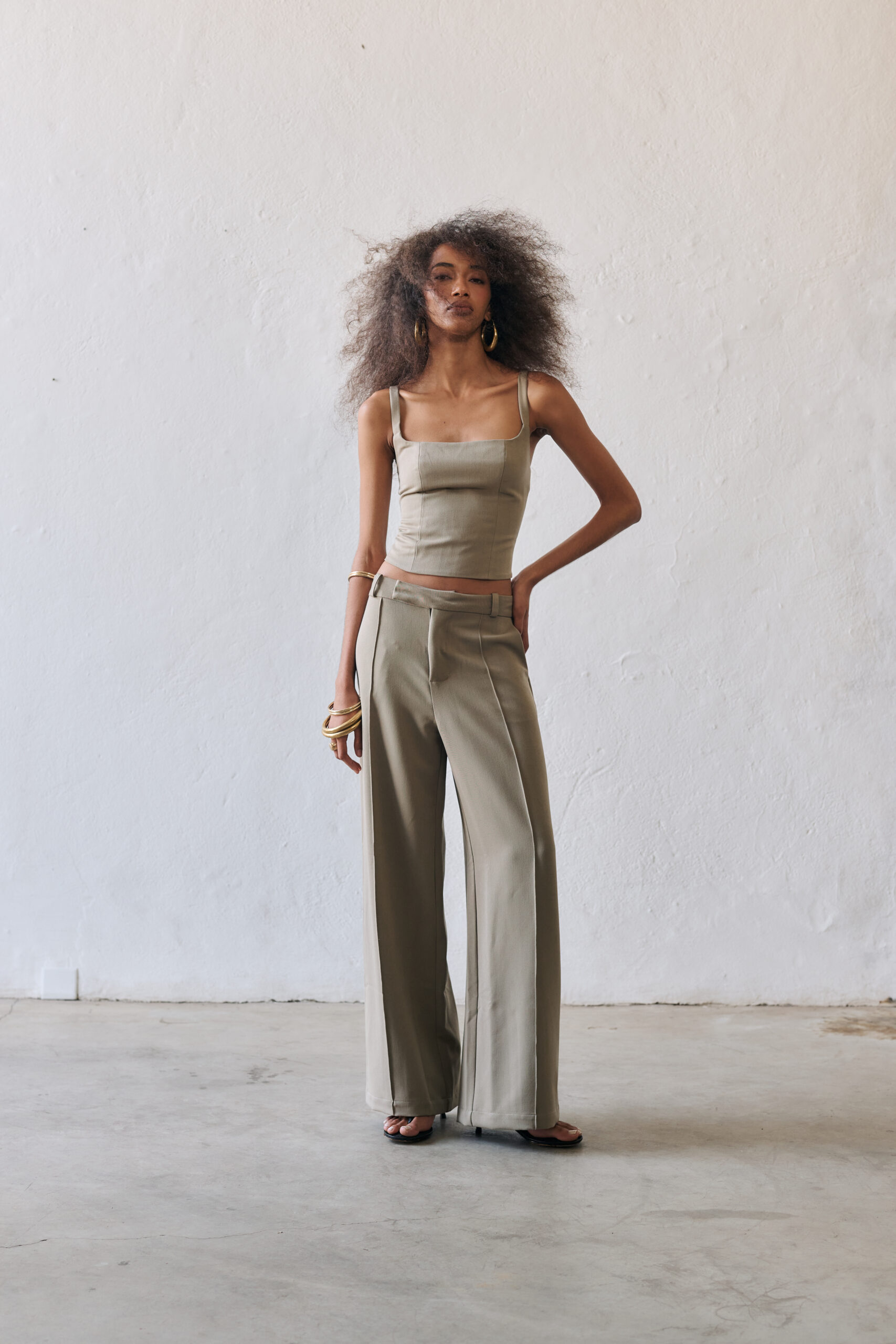 A calça Ayla carrega o equilíbrio entre estrutura e fluidez. De cintura média e corte reto, alonga a silhueta e cria uma linha visual elegante. O tecido de alfaiataria confere caimento impecável e movimento leve, tornando a peça versátil, ideal para combinar com a blusa Mia ou com camisas e tops mais soltos. Atemporal e refinada, é o tipo de peça que transita com naturalidade entre o casual chic e o sofisticado.