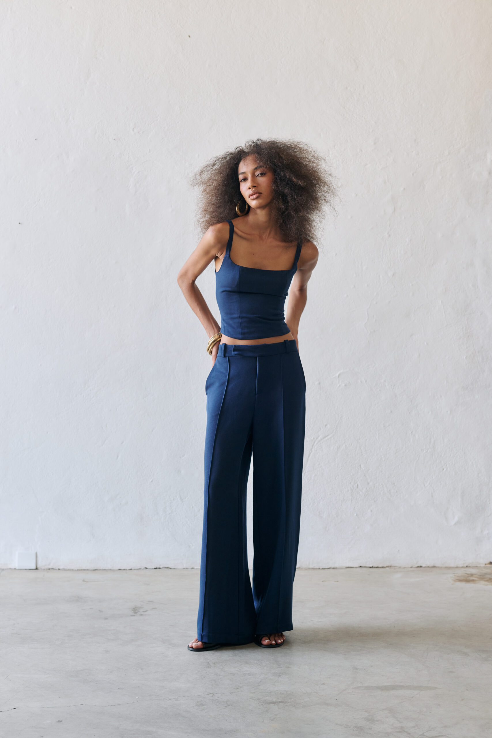 A calça Ayla carrega o equilíbrio entre estrutura e fluidez. De cintura média e corte reto, alonga a silhueta e cria uma linha visual elegante. O tecido de alfaiataria confere caimento impecável e movimento leve, tornando a peça versátil, ideal para combinar com a blusa Mia ou com camisas e tops mais soltos. Atemporal e refinada, é o tipo de peça que transita com naturalidade entre o casual chic e o sofisticado.