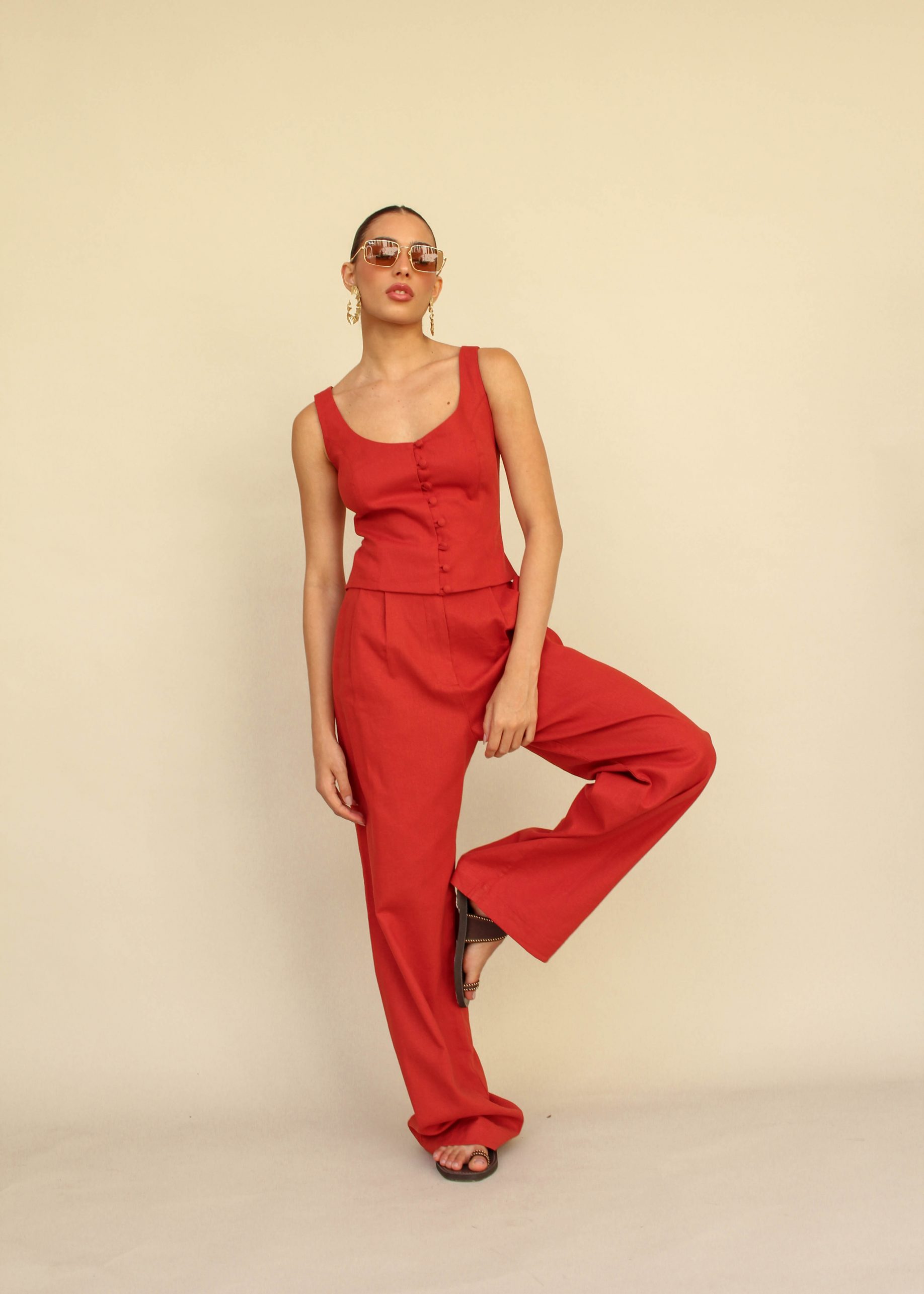 Nosso Corset Rita, é feito em linho, com recortes que trazem estrutura a peça. Todo duplo e com botões forrados, possui fechamento frontal através do abotoamento.