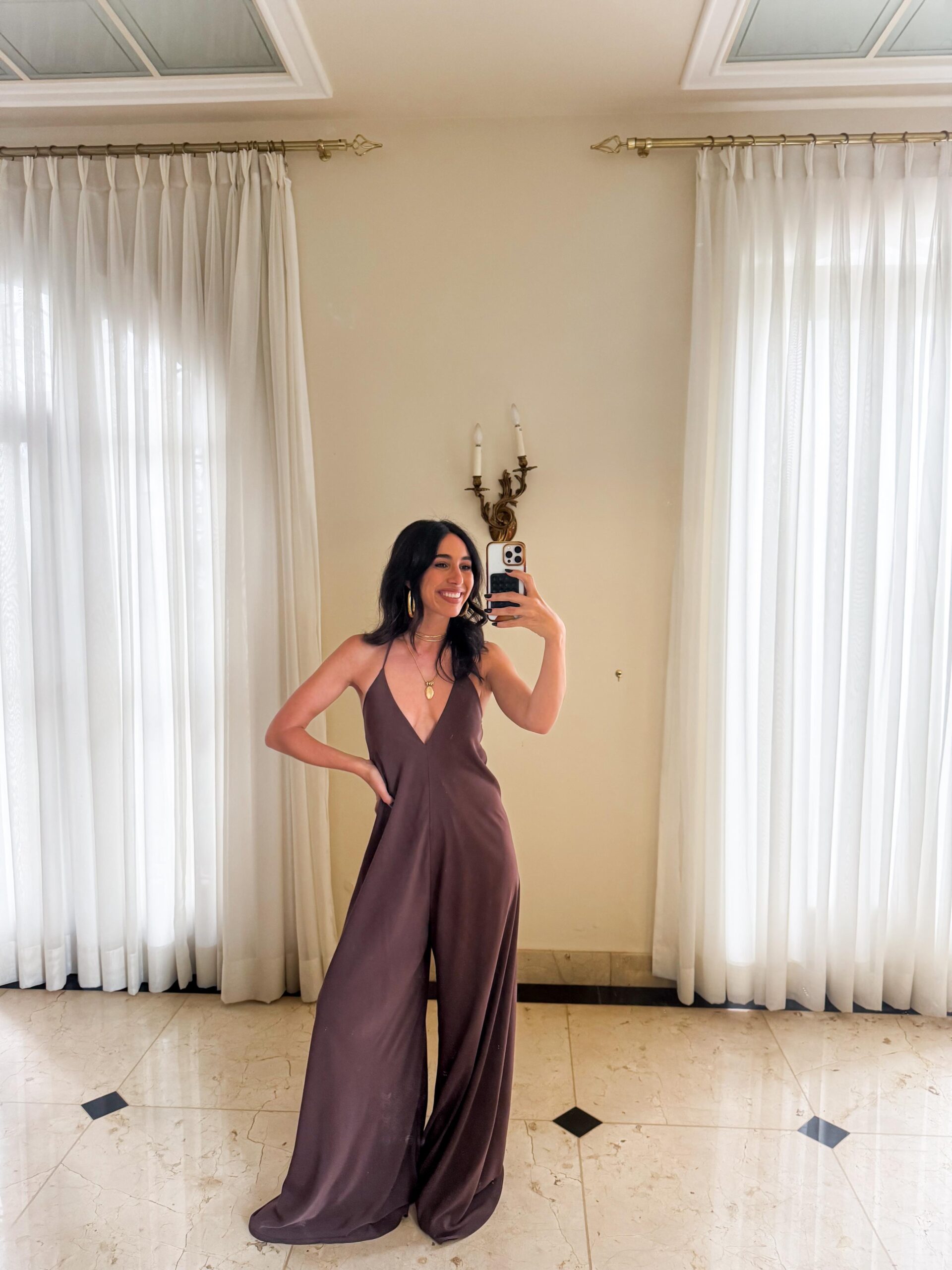Nosso Macacão Gabriela é super estiloso e versáril. Possui uma modelagem ampla e amarração de frente única, com alcinhas regulavéis e finas que possibilita várias formas de amarração. Seu decote Frontal, é em formato V e nas costas um decote profundo um pouco acima do quadril, trazendo um charme para a peça. Possui um zíper invisível no centro da linha das costas. Uma peça chique sem perder o conforto!