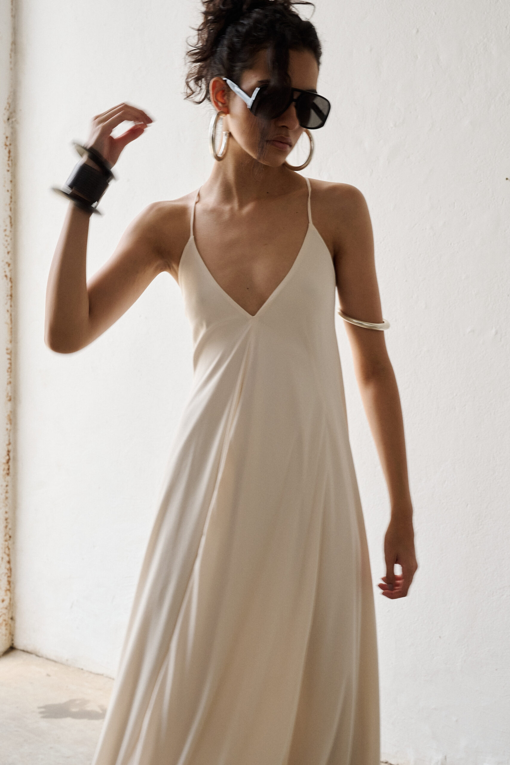 Nosso Vestido Ada é a expressão da leveza elegante. Com decote em V delicado e alças finas, ele apresenta um caimento fluido que acompanha o corpo com naturalidade, criando movimento e sofisticação em cada passo. O destaque da peça está nas costas cruzadas com amarração, um detalhe que equilibra sensualidade e delicadeza, permitindo ajustar o vestido ao corpo e garantindo conforto durante o uso. Seu comprimento longo e a barra assimétrica reforçam o visual esvoaçante, ideal para ocasiões especiais, jantares e eventos ao ar livre. O tom preto acrescenta atemporalidade, tornando o Ada uma peça versátil para diferentes momentos.