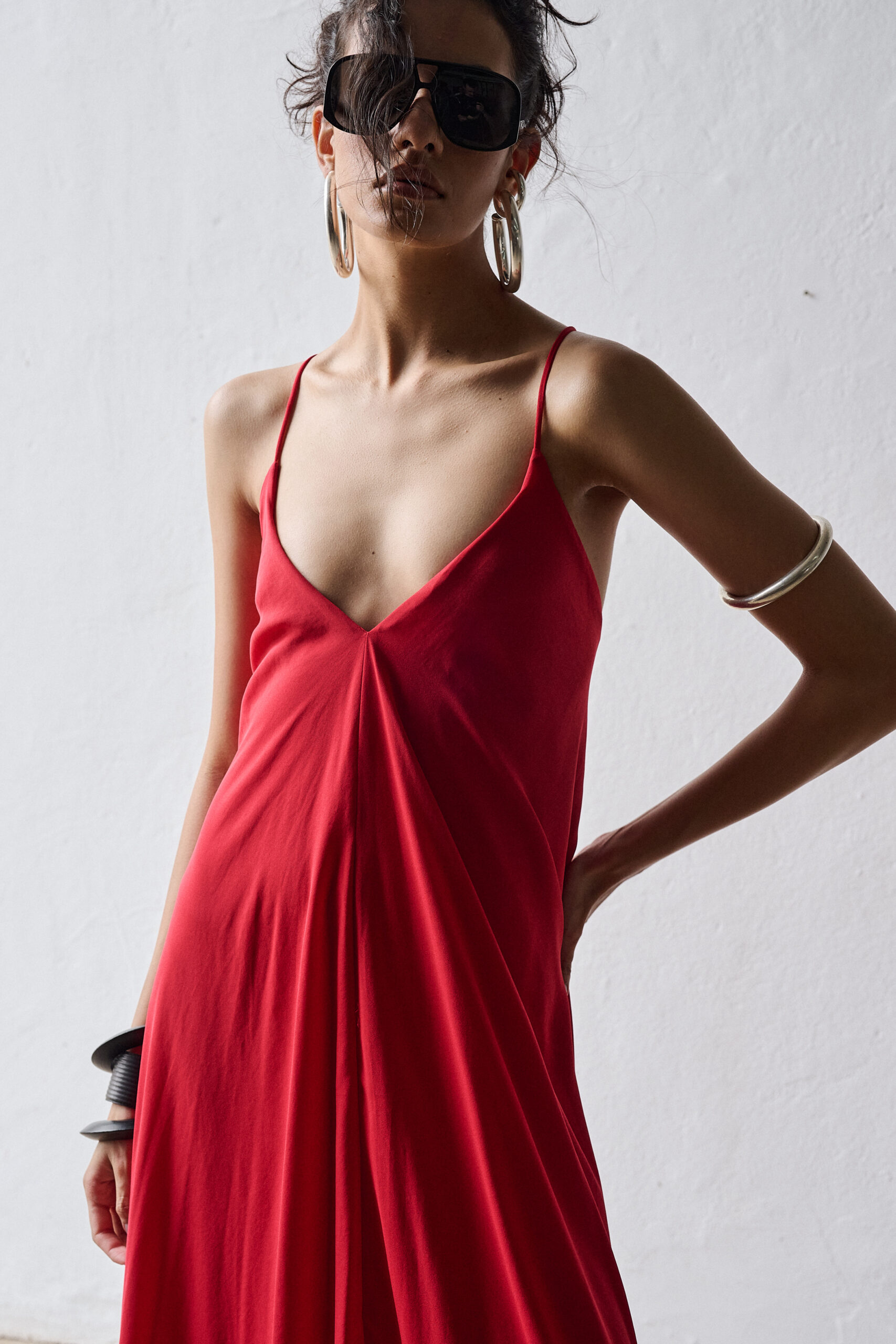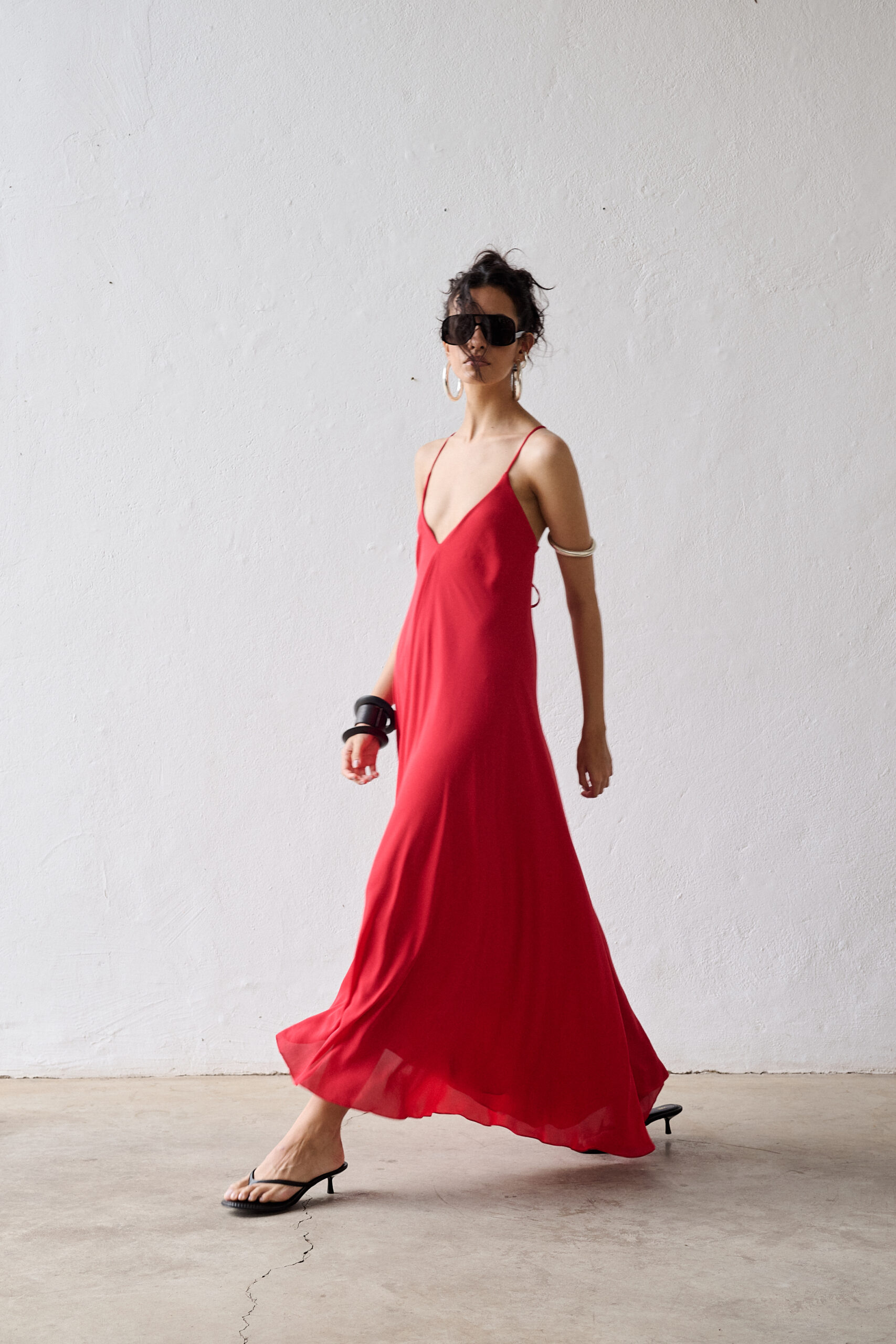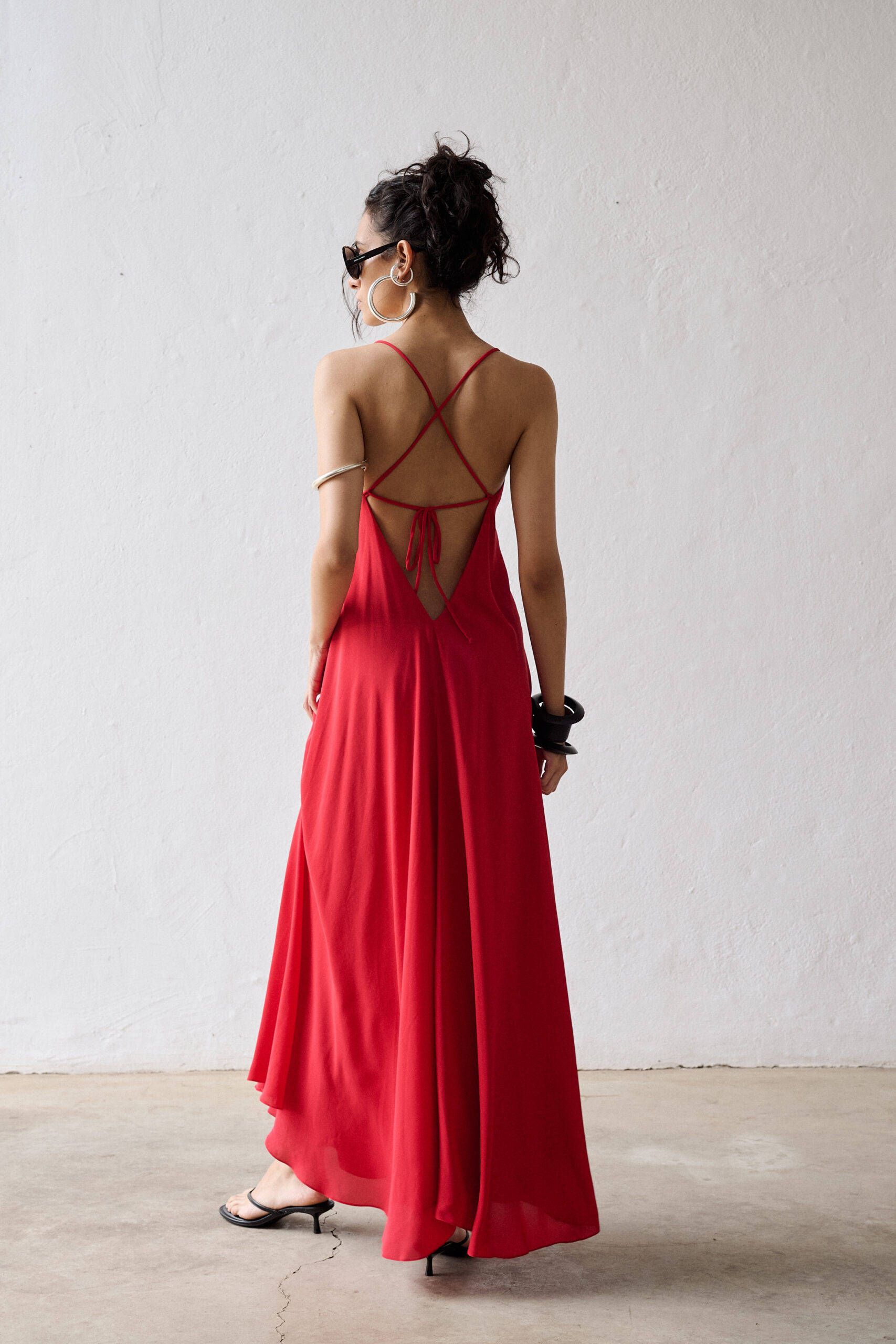 Nosso Vestido Ada é a expressão da leveza elegante. Com decote em V delicado e alças finas, ele apresenta um caimento fluido que acompanha o corpo com naturalidade, criando movimento e sofisticação em cada passo. O destaque da peça está nas costas cruzadas com amarração, um detalhe que equilibra sensualidade e delicadeza, permitindo ajustar o vestido ao corpo e garantindo conforto durante o uso. Seu comprimento longo e a barra assimétrica reforçam o visual esvoaçante, ideal para ocasiões especiais, jantares e eventos ao ar livre. O tom preto acrescenta atemporalidade, tornando o Ada uma peça versátil para diferentes momentos.