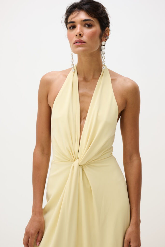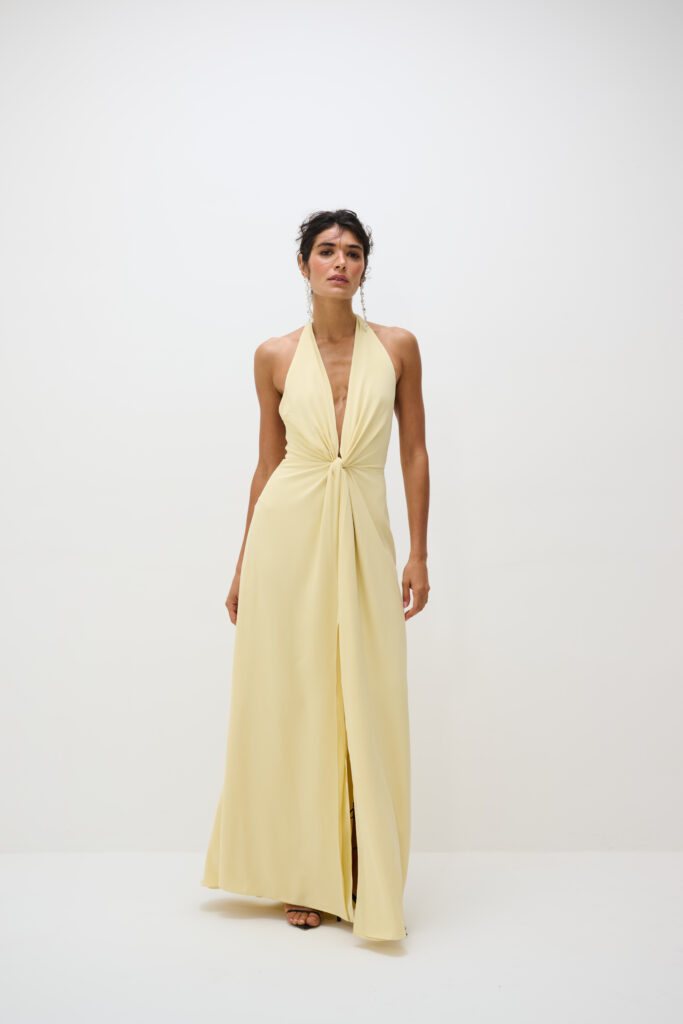 Nosso Vestido Luz é um clássico que une fluidez e elegância. Confeccionado em tecido leve e de caimento delicado, traz frescor e serenidade à produção. O decote degagê valoriza o colo com um caimento natural e sofisticado, enquanto o modelo frente única evidencia os ombros e as costas de forma sutil e elegante. A modelagem alongada e reta cria uma silhueta esguia, perfeita para eventos formais, festas ao ar livre ou ocasiões especiais que pedem leveza com presença.