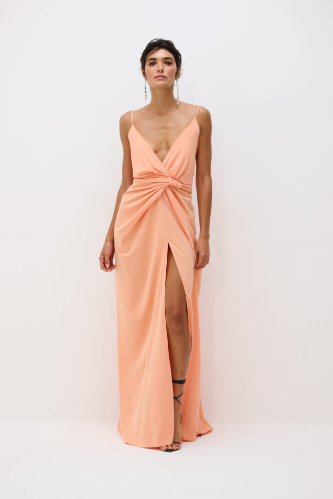 Minimalista e chic, nosso Vestido Pri tem o poder de transformar o visual de uma maneira imponente e despretensiosa ao mesmo tempo. Possui decote em v e costas abertas com amarração ajustável de alças finas na cintura. Fechamento por zíper invisível nas costas e fenda no meio com drapeado na lateral. Comprimento que permite a peça ser usada de salto até mesmo pelas mais altas. O que é mais apaixonante nessa peça é que ela funciona para uma ocasião especial como um casamento ou formatura, ou para uma proposta casual glam.