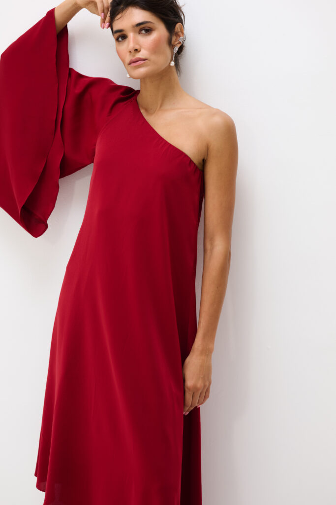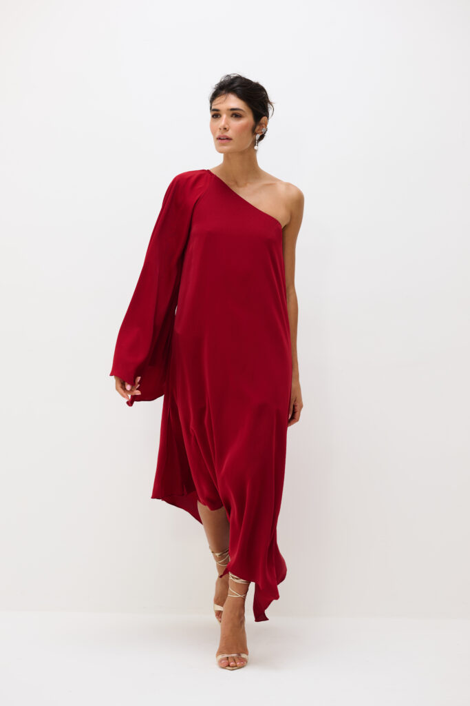 Nosso vestido Dih possui decote em V nas costas e amarração frente única, que possibilita outros acabamentos. Feito em crepe de alfaiataria bem fluido com peso, por ser todo duplo, criando um caimento bem bonito à peça. Decote em gota na parte do busto e comprimento longo.